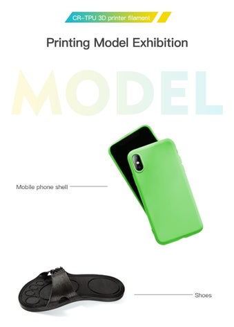 Creality TPU is a traditional 95A shore hardness flexible filament. It has 700%+ of elongation at break and great tear resistance and resilience. |