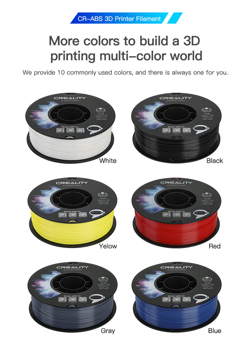 NOTE: Recommend CR-ABS to print with fully enclosed printers or with Creality enclosure.