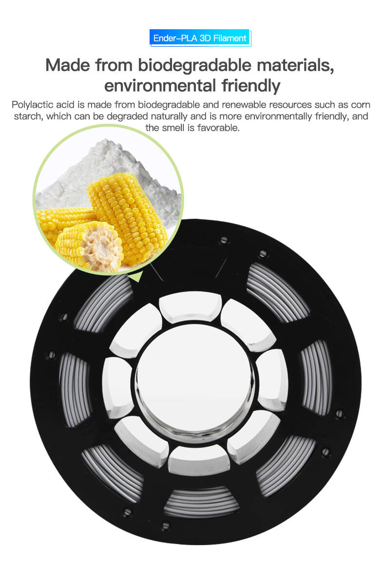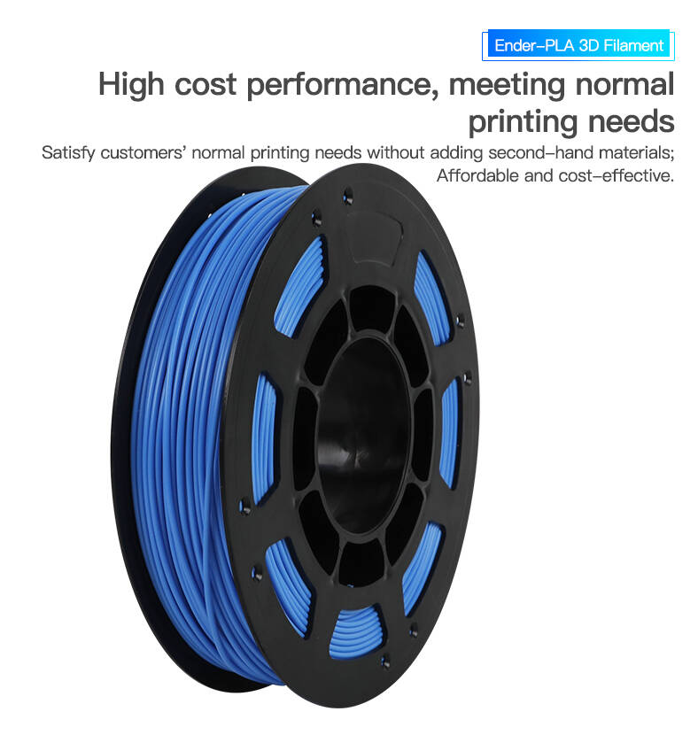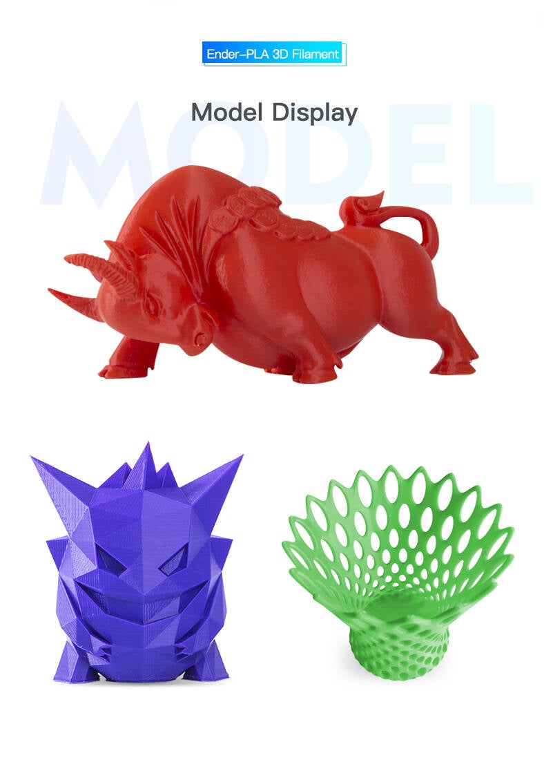 | Ender PLA filaments are 3D printing filaments based on PLA. Good printing performance, bright model surface, rich color, good toughness, and high dimensional accuracy. Ender-PLA widley used in FDM printers on the market. |